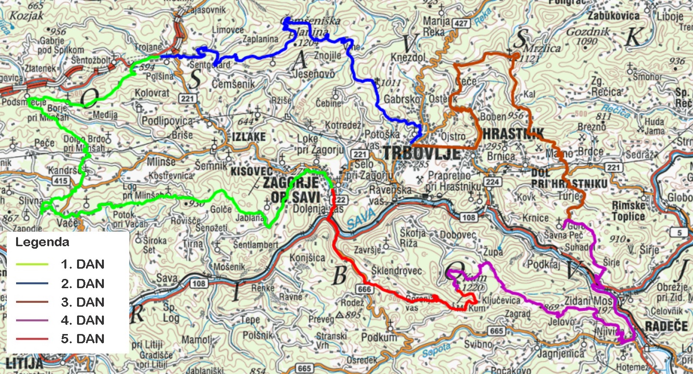 Celoten Zasavski krog bomo izvedli v petih dneh oz. petih samostojnih turah. Predvidena trasa poti je sledeča: