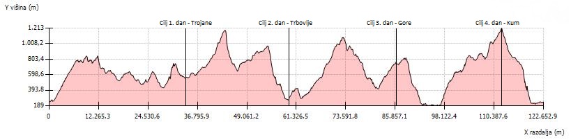 4. dan: Gore – Radeče – Kum (26 km, 1200 višincev)