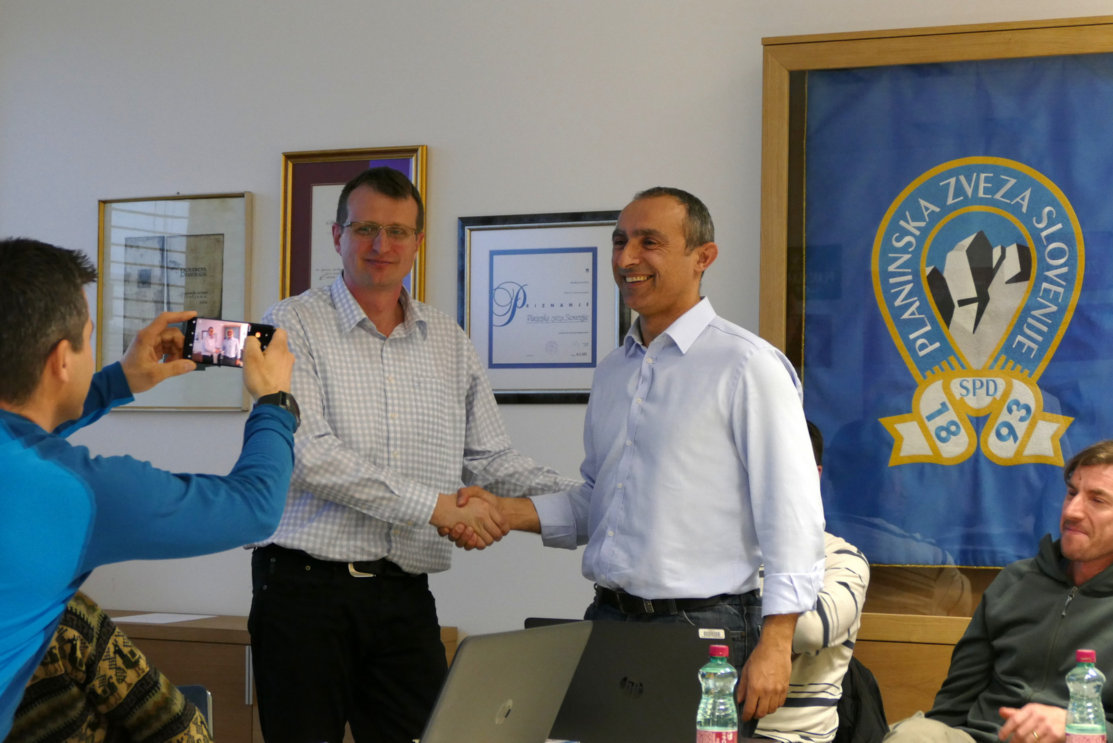Predsednik PZS Bojan Rotovnik čestita novemu načelniku KTK PZS Atili Armentanu. (foto Tomaž Lampelj)