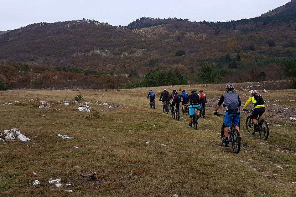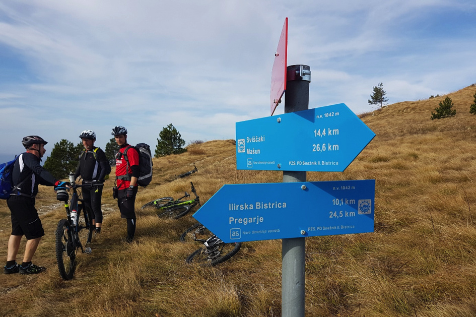 Na Črnih njivah nad Ilirsko Bistrico se nas je zbralo 22. Po kratkem uvodnem pozdravu domačih vodnikov, ki ga je pospremila gostinska ponudba iz avtomobilskega prtljažnika, ter po nekaj minutah ritualnega ogrevanja in po hitrem pregledu koles smo se, v družbi predsedniško-načelniške naveze PZS in KTK, v zmerno vznesenem tempu podali na obljubljeno pot.