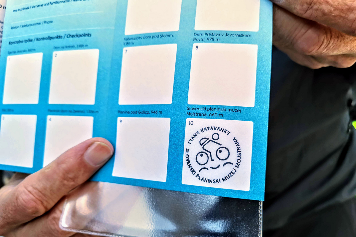 Žig v dnevnik turnokolesarske poti Trans Karavanke (foto Matjaž Šerkezi)
