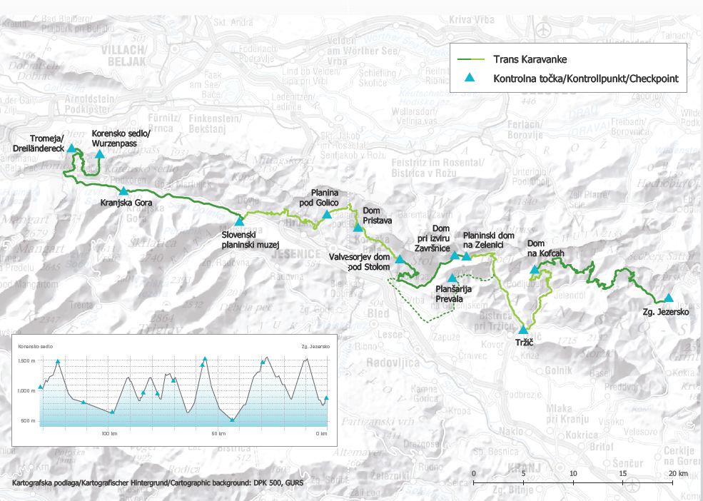 Trasa in kontrolne točke nove turnokolesarske poti Trans Karavanke