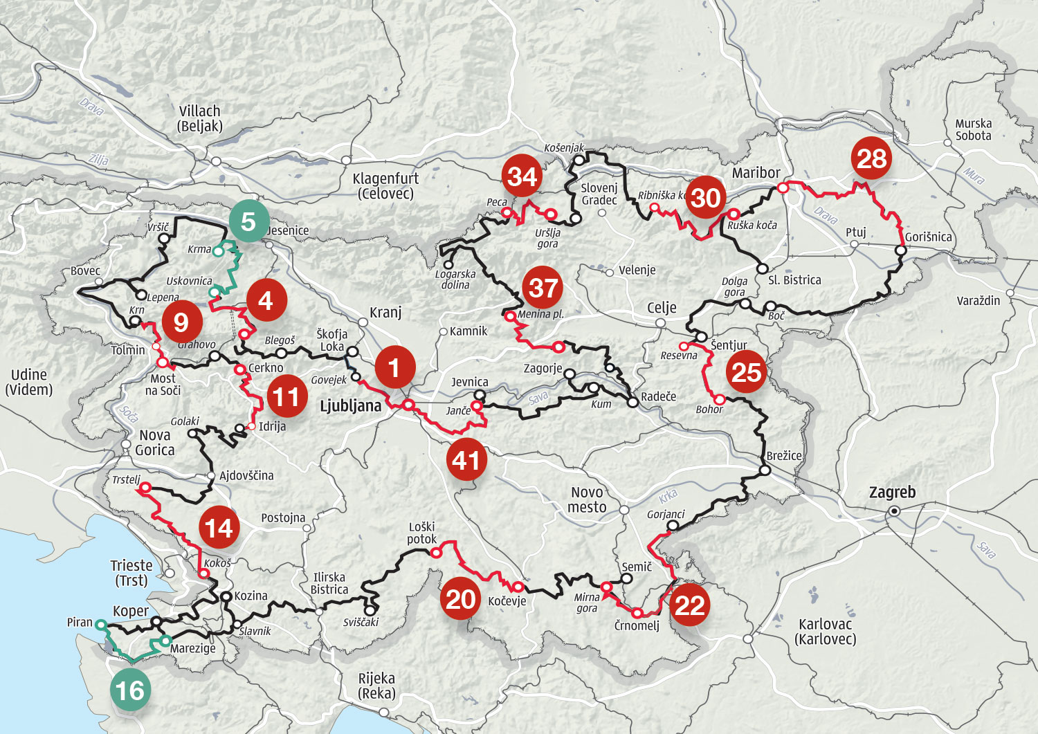 - 01: Ljubljana - Mihelčičev dom na Govejku - (Celoten opis etap)