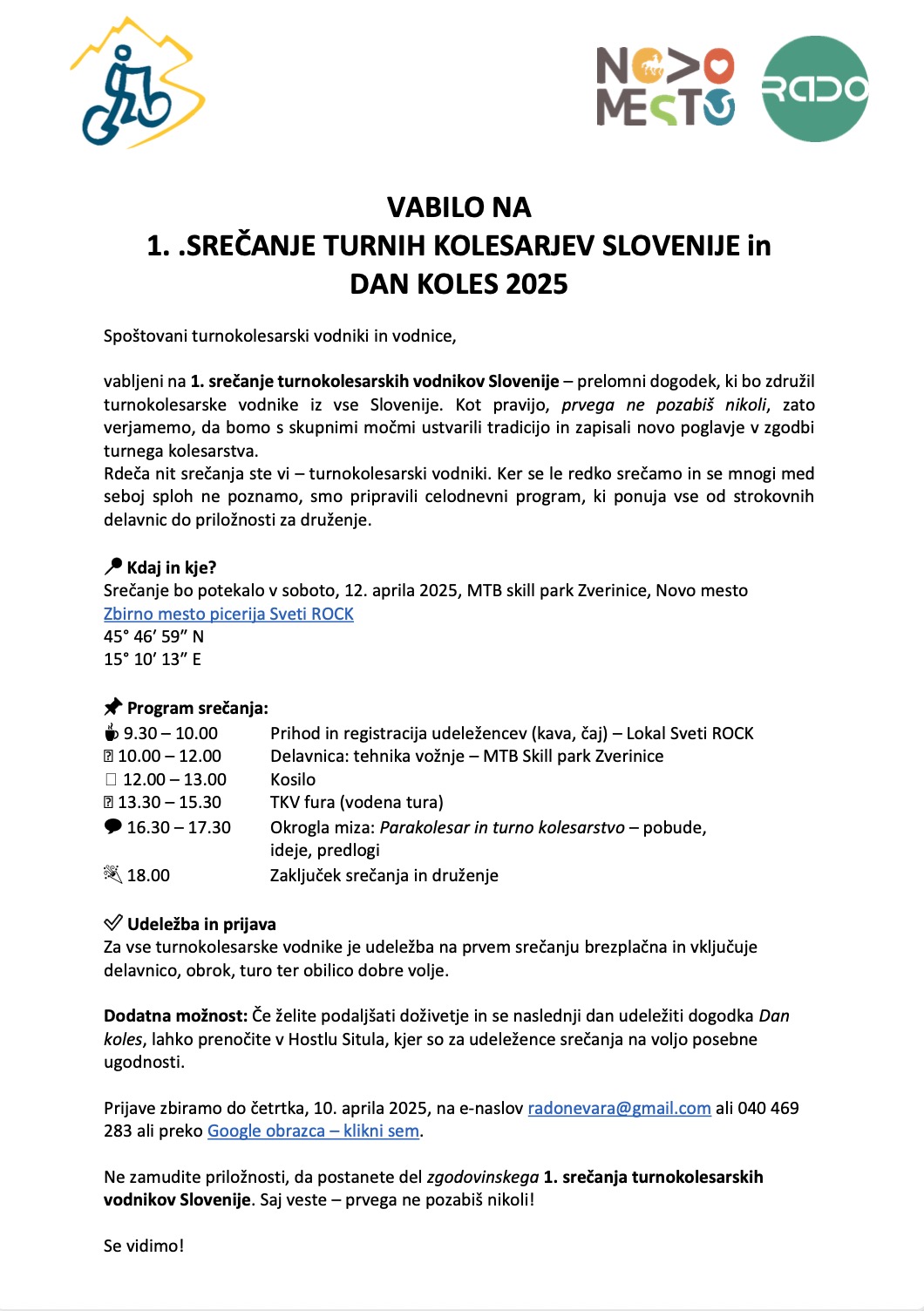 1. srečanje turnokolesarskih vodnikov Slovenije | vabilo